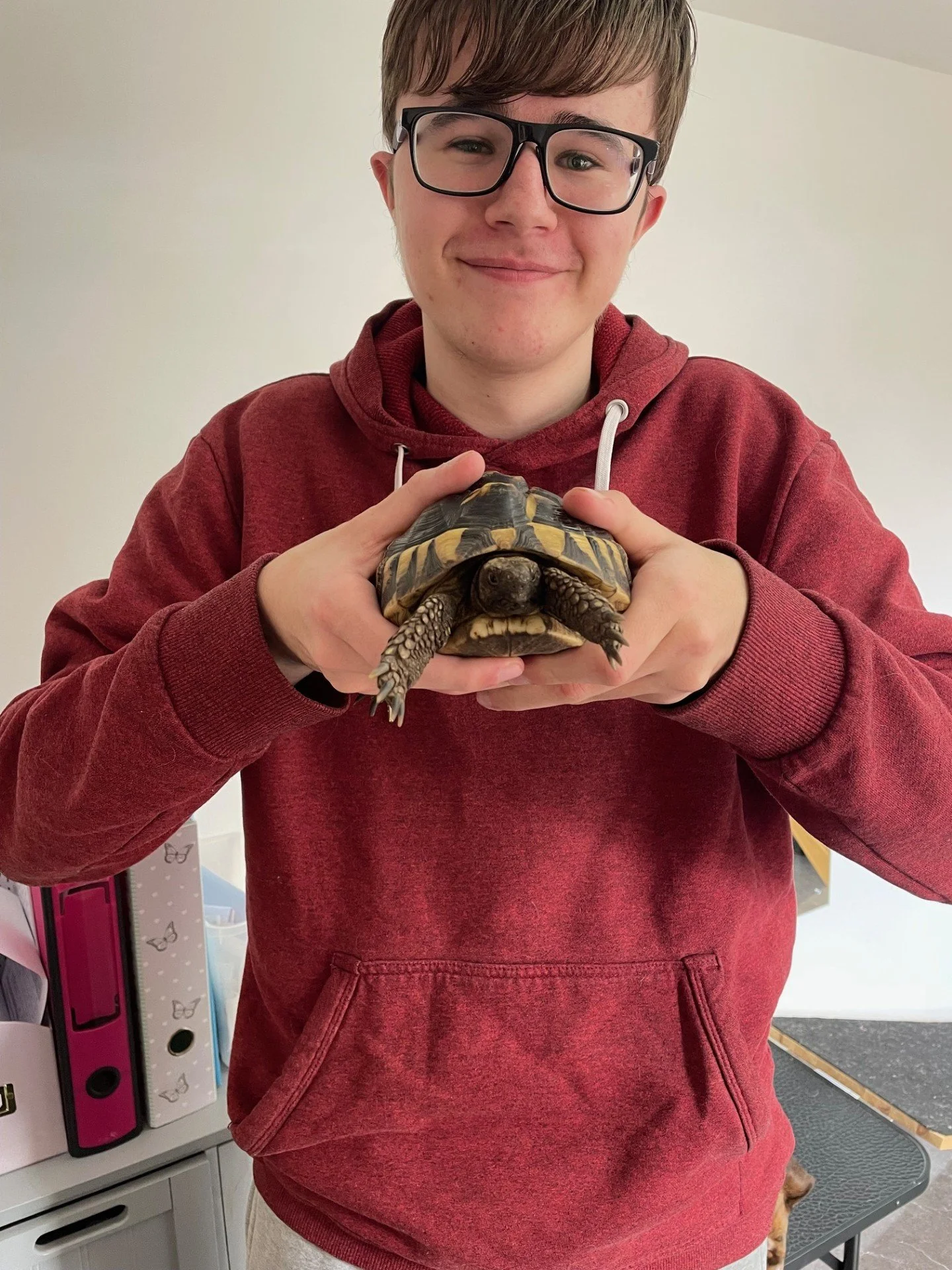 My son has a tortoise which has been with us for 10 years, her outside pen in by the cattery so the cats can watch her get up to all sorts. And lastly my youngest used his pocket money this Christmas to by his first pet, which is a lovely rabbit called Toast who roams Williams bedroom.